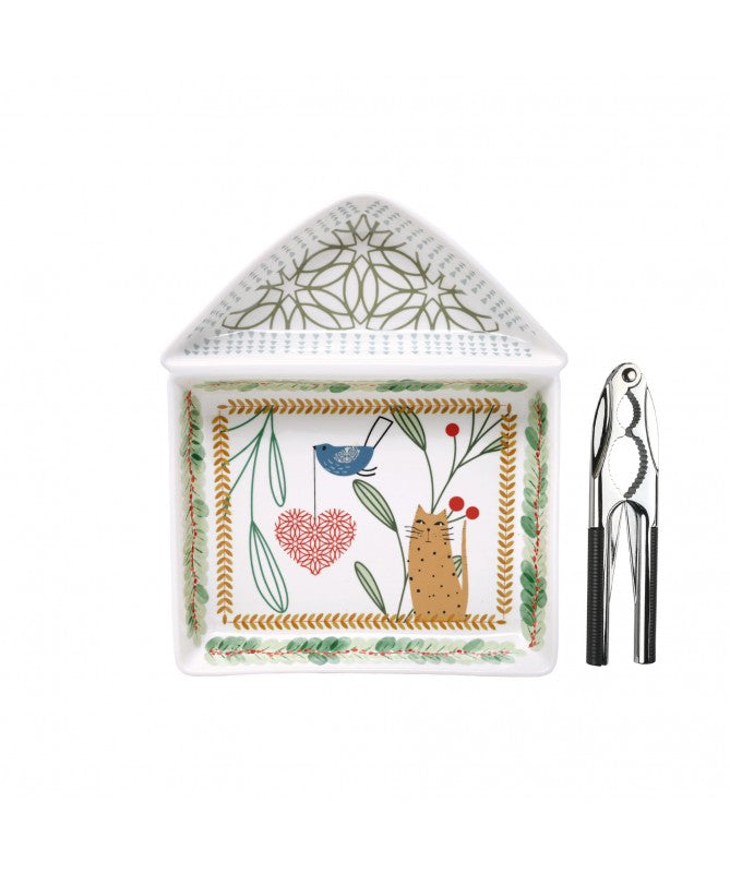 VASSOIO IN CERAMICA DECORATA CON SCHIACCIANOCI E GIFT BOX