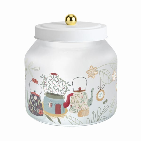 Biscottiera in vetro satinato con tappo metallo 15,5x17h cm