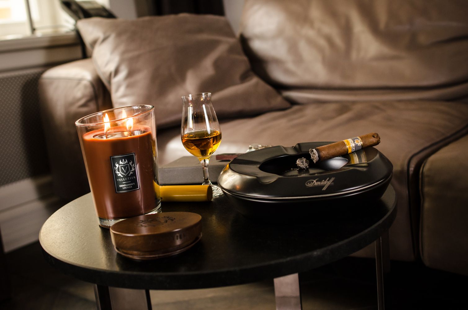 Con al candela Gentlemen's Lounge di Vellutier entra a far parte del club esclusivo e immergiti nelle fragranze tonificanti del frizzante bergamotto e della calda tonka, esaltate da sentori di cedro robusto, cuoio lussuoso, muschio morbido e patchouli terroso.