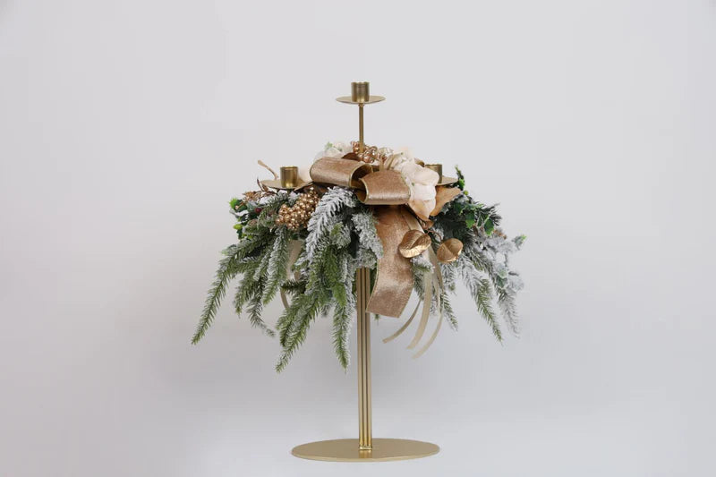 CANDELIERE 3 FIAMME ORO 50H FIORI DI LENA