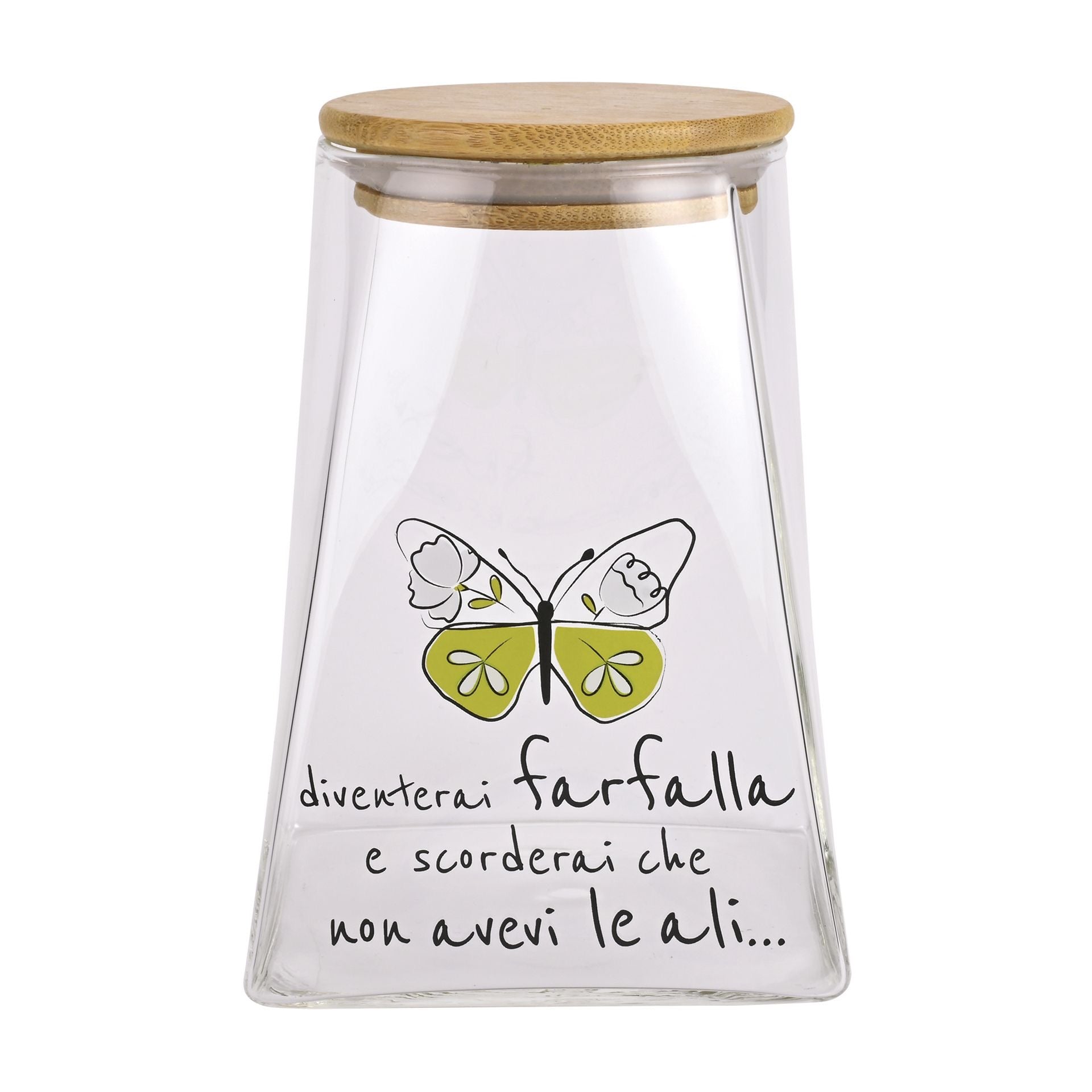 Barattolo in Vetro con Tappo in Legno WALD Positivitime “Diventerai Farfalla”