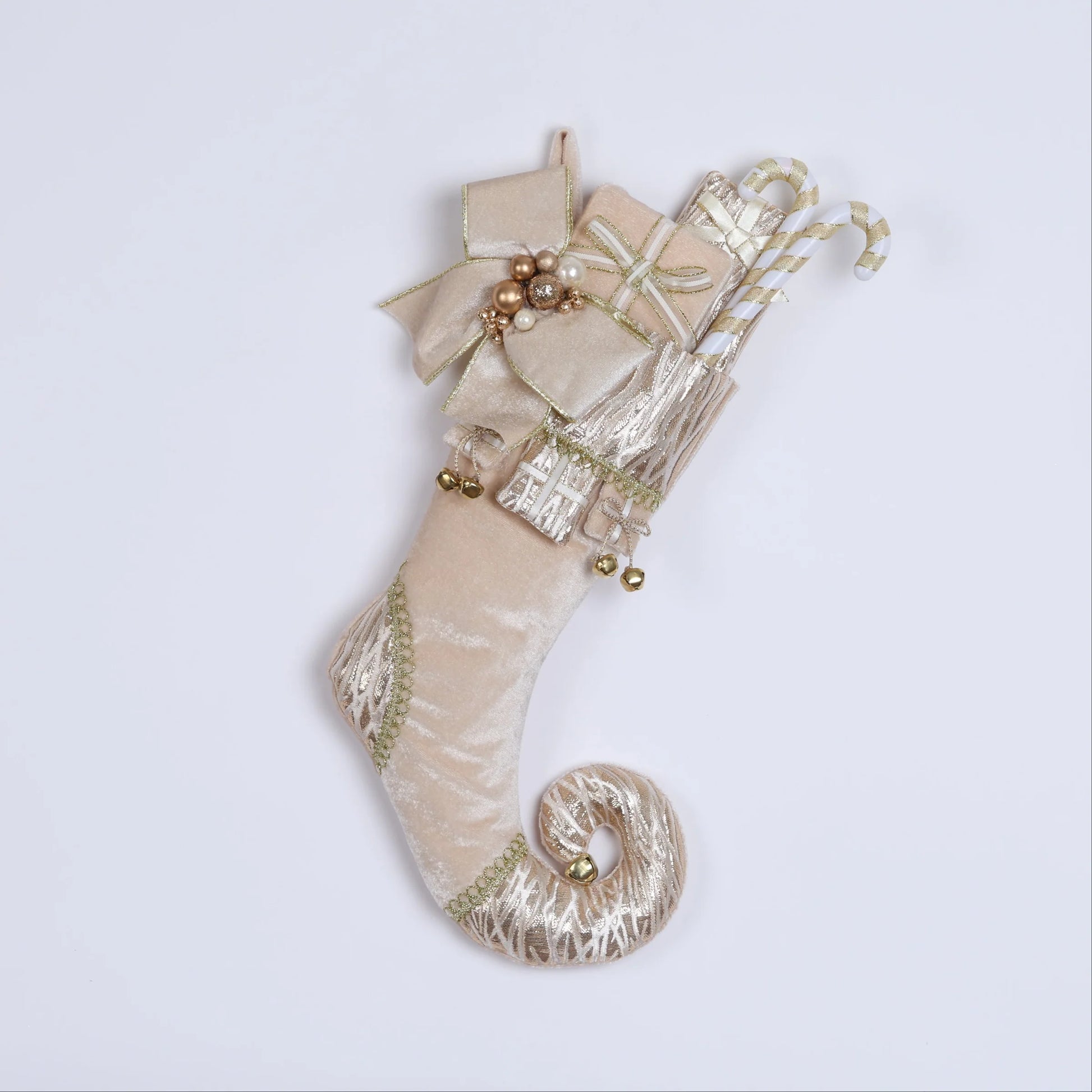 CALZA IN VELLUTO CON DONI DA APPENDERE IN AVORIO E ORO 46CM