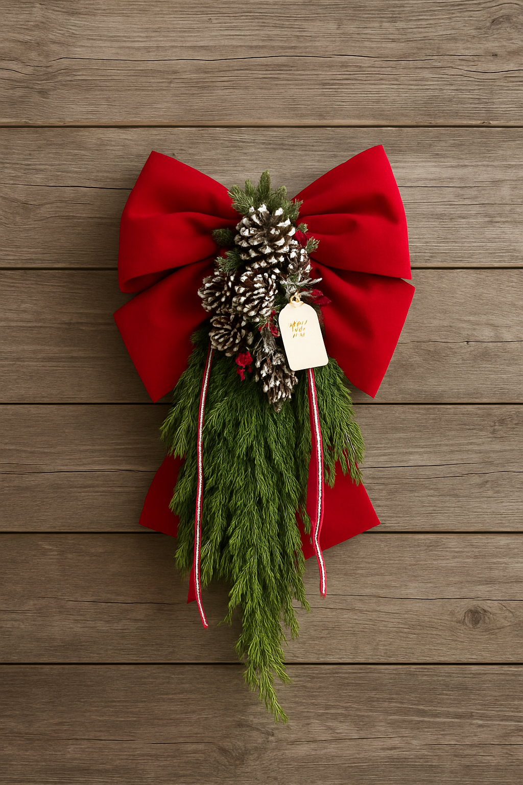 FUORIPORTA NATALIZIO FIOCCO ROSSO CON PINO E PIGNE 75CM FIORI DI LENA