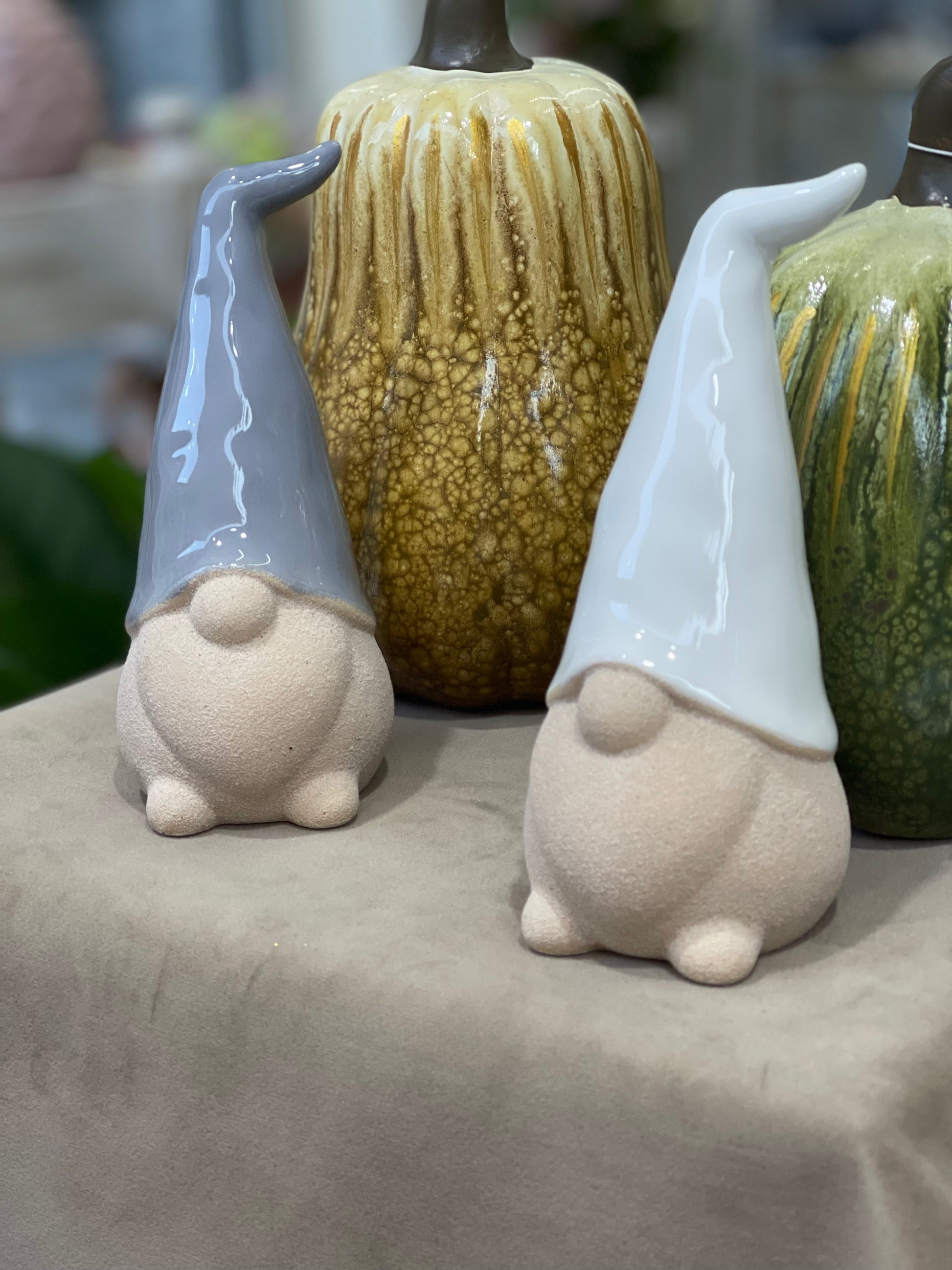 Porta allegria e stile alla tua casa con questo delizioso gnomo decorativo in porcellana, alto 16 cm. Realizzato con corpo opaco effetto sabbiato e cappello lucido disponibile in due colori (grigio o bianco), è perfetto per arredare mensole, tavolini o composizioni stagionali. Il design moderno e minimal lo rende ideale sia per ambienti shabby chic che contemporanei.