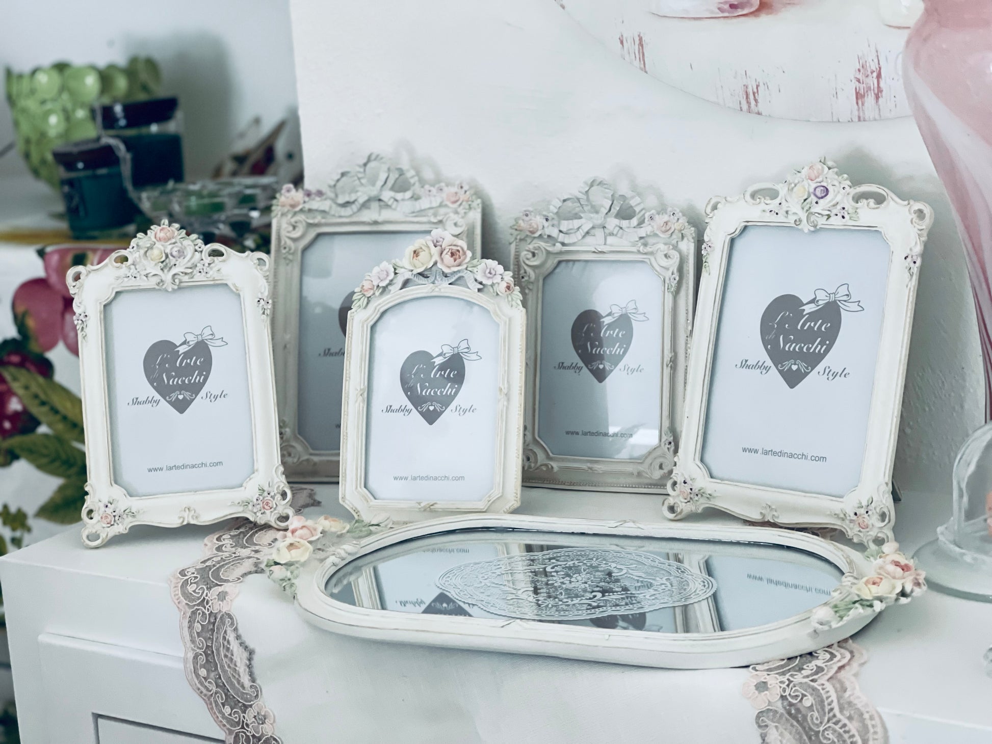 Portafoto shabby chic in resina con fiocco e fiori dipinti a mano | L'Arte di Nacchi
