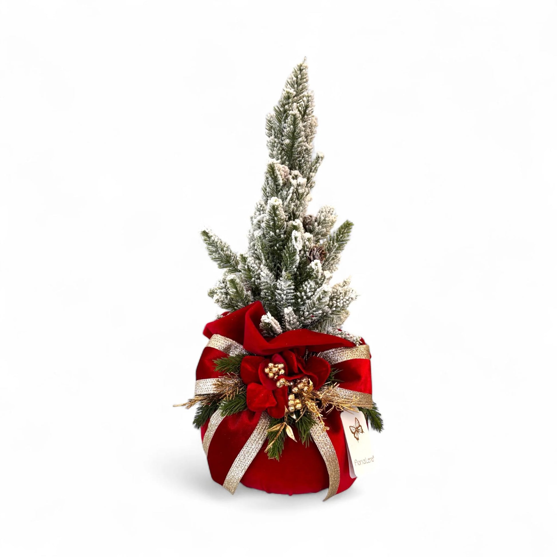 ELEGANTE POUF PROFUMATO IN VELLUTO ROSSO CON ALBERELLO E DECORI NATALIZI FIRMATO FIORI DI LENA 40H X 15 DIAMETRO