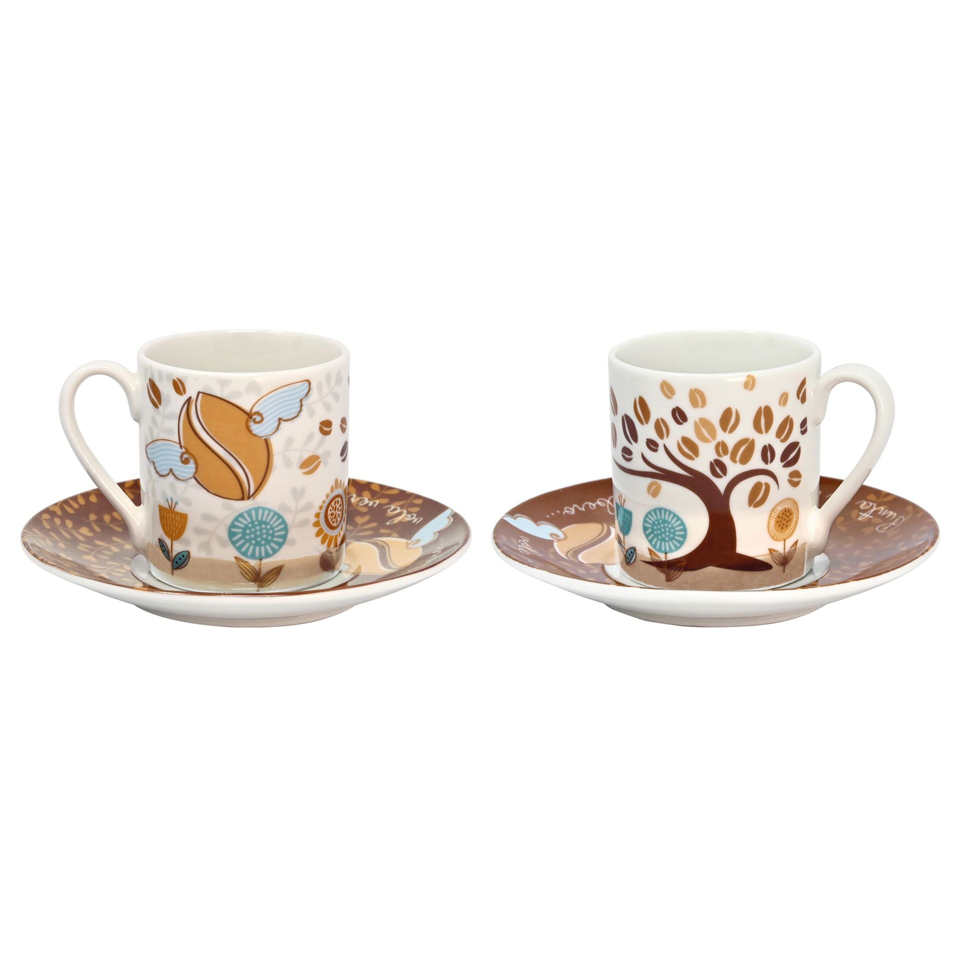 SET 2 TAZZE ESPRESSO CON PIATTINO DECORO CAFFE' 9cl
