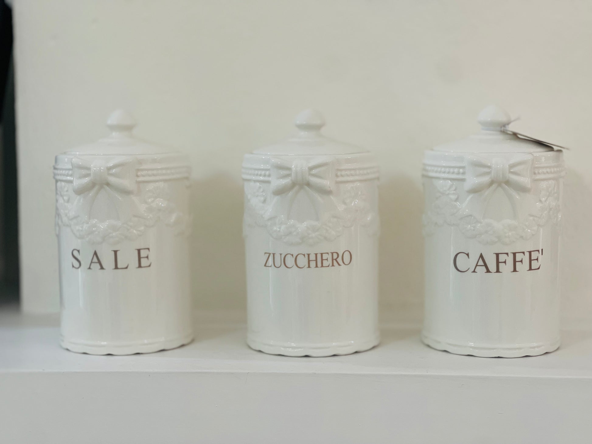 - Set composto da 3 barattoli: sale, zucchero, caffè