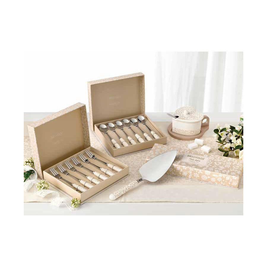 Il set da 6 cucchiaini Brandani della collezione Campo ai Fiori unisce eleganza romantica e praticità quotidiana. Ogni cucchiaino è composto da una parte in acciaio inox e un raffinato manico in porcellana decorata con un delicato motivo floreale nei toni beige, perfetto per impreziosire ogni pausa dolce o salata. Ideali per dessert, tè, caffè o per completare con stile una mise en place coordinata, questi cucchiaini sono anche un’ottima idea regalo.