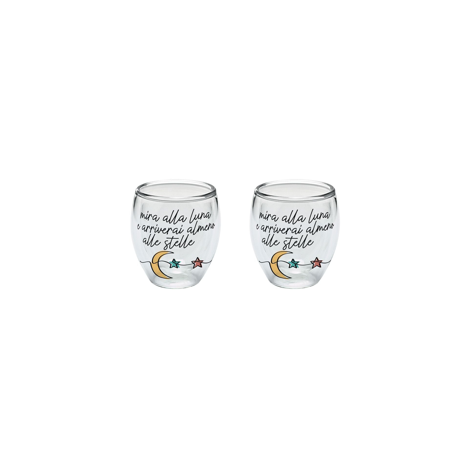 SET BICCHIERI CAFFE' IN BOROSILICATO CON DECORO RISI E SORRISI 10CL