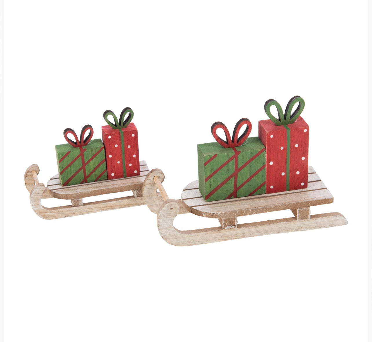 Porta l’atmosfera delle feste nella tua casa con queste deliziose slitte in legno, cariche di coloratissimi pacchetti regalo. Ogni slitta racconta la magia del Natale, con un design semplice e raffinato che si adatta perfettamente a qualsiasi angolo della tua casa.