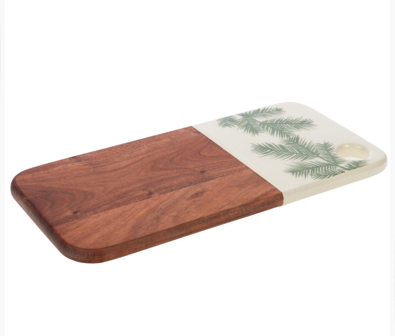Con una dimensione di 35x17 cm, il Tagliere Sylvestre è un elemento pratico e decorativo, perfetto per servire formaggi, salumi, antipasti o come base per la preparazione dei tuoi piatti. Realizzato in resistente legno di acacia, si distingue per il suo design originale, impreziosito da un motivo ispirato ai rami di pino, che dona un tocco di carattere alla tua tavola.