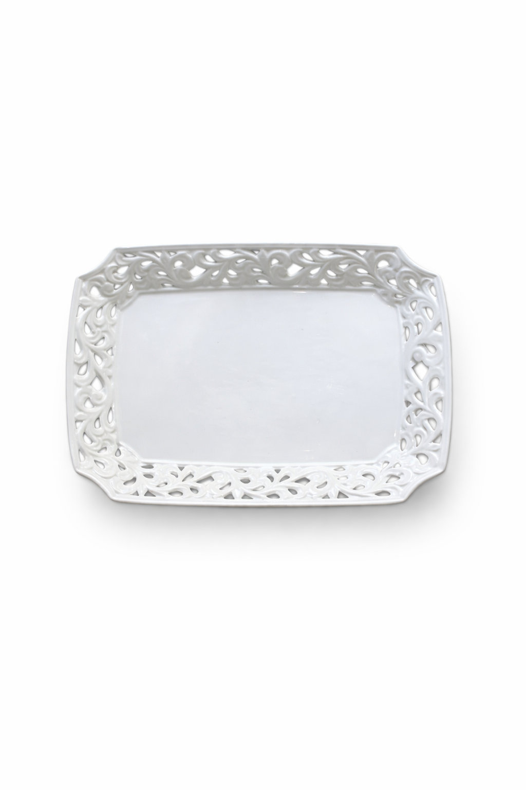 Vassoio Rettangolare in Porcellana Bianca Traforata | L’Arte di Nacchi